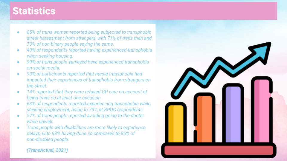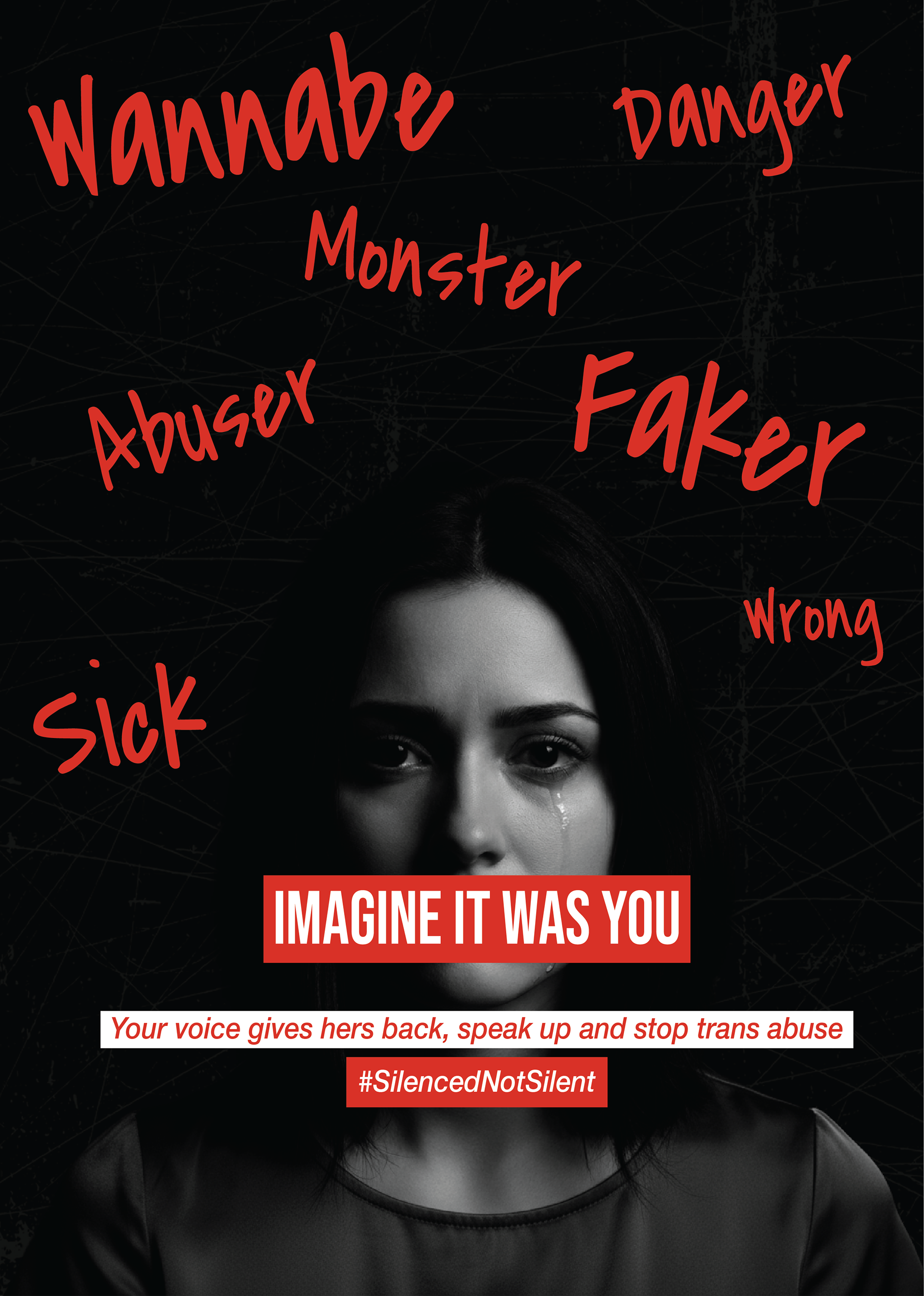 The print posters form the core of the campaign. Each one highlights a different statistic about the abuse faced by trans people, paired with a clear call to action. The consistent layout and colour system create a strong visual identity that is easy to recognise across different contexts.