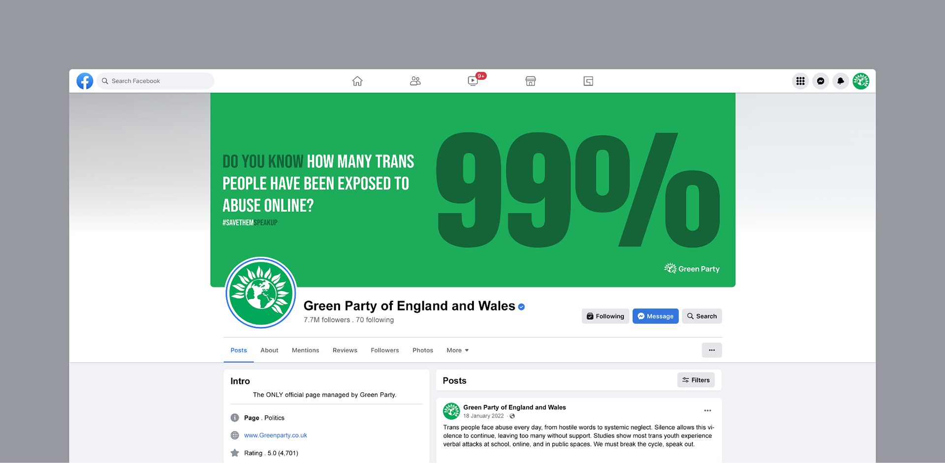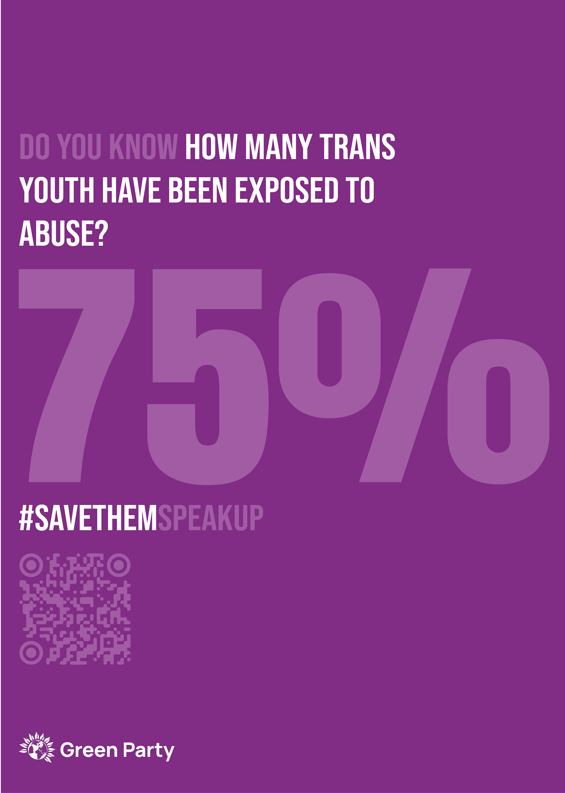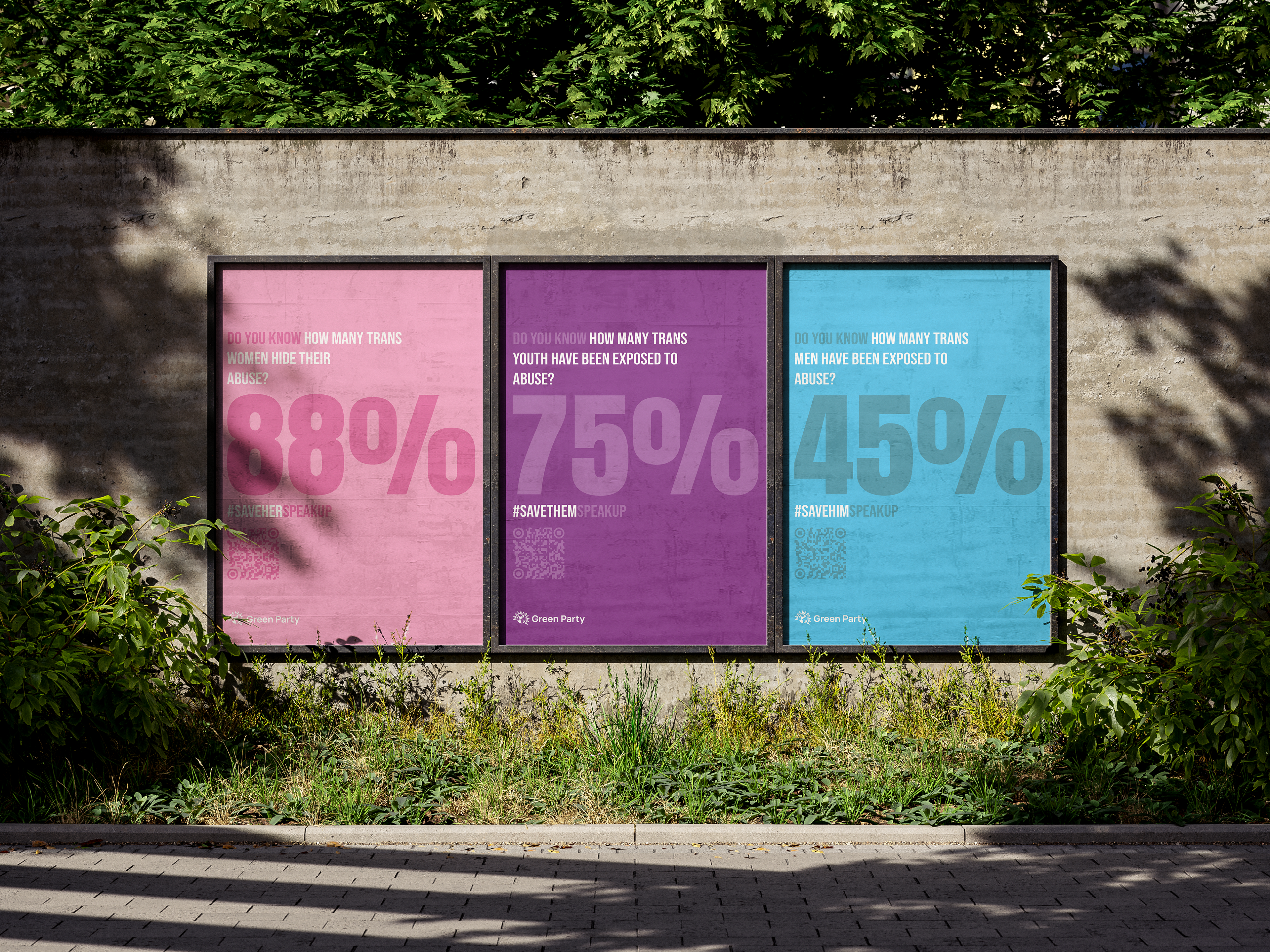 This project focuses on raising awareness of the abuse faced by trans people in the UK. I developed a campaign that uses bold statistics, empathetic messaging, and a stripped‑back visual system inspired by Green Party. The aim was to create a campaign that feels honest, accessible, and grounded in real experiences while remaining suitable for both print and digital platforms like Facebook.